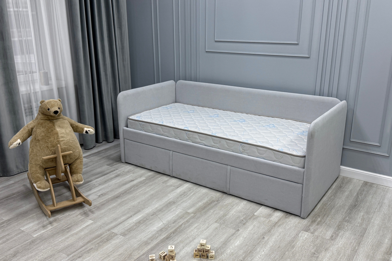 это мягкий, дышащий и приятный на ощупь материал, созданный специально для обеспечения максимального комфорта и безопасности ребёнка во время сна. Благодаря своей эластичной структуре ткань легко подстраивается под форму матраса, не образуя складок, а высокая износостойкость гарантирует долгий срок службы. Материал обладает хорошей воздухопроницаемостью, что помогает поддерживать оптимальный микроклимат в спальном месте. Поверхность трикотажа «Ovis» гипоаллергенна и не вызывает раздражений, что особенно важно для чувствительной детской кожи.)